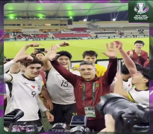 赛后U23亚洲杯官方晒出了U23国足赛后庆祝的视频,视频中球员们将主教练安东尼奥抛向空中,兴奋的球员们在面对摄像头时集体做出庆祝动作,并与国旗合影留念。